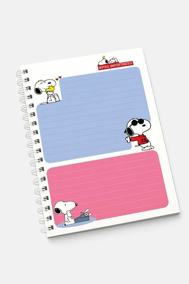 📆 Hoja de Notas Importantes 📎 Espiral metálico resistente, fácil de abrir y cerrar. 📘 Pasta semidura emplasticada, duradera y de aspecto elegante. 📄 Tamaño media carta, práctico para llevar en bolso o mochila. 🖊️ Hojas suaves para escribir con comodidad. 💡 Ideal para: estudios, trabajo, oficina o uso personal. 🎨 Personaje Snoopy